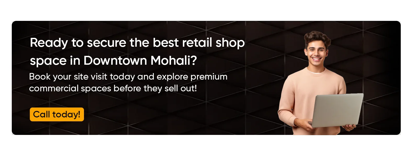 Retail store space in Downtown Mohali has the best combination of walk-ins, visibility, modern facilities, and investment safety. For business owners, established retailers, and commercial real estate investors alike, this Retail Hub promises long-term potential and robust returns.